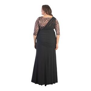 Kiyonna's Soiree dress features delicate mesh that gathers over the scalloped V-neck for a one-shoulder illusion. An asymmetrical drop waist and trumpet skirt accentuate your natural curves. V-neck Three-quarter sleeves Pull-on style 95% polyester/5% spandex Lining: 100% polyester Lace: 92% nylon/8% spandex Dry clean Made in USA of Imported fabric SIZE True to size About 61" from shoulder to hem Our products are 100% genuine. We stand by the authenticity of every product sold. Our clothing, handbags, shoes have a black or red line strikethrough label to prevent returns. Colors can be slightly off in images due to photo lighting. Please open images and review before purchasing. regencycore, princesscore, romantic, whimsical, Black tie, formal wear, elegant, evening wear, cocktail, prom, ball, wedding guest, bridesmaid, date night, dressy, chic, bridal shower, baby shower, special occasion, bachelorette, gala, school dance, homecoming