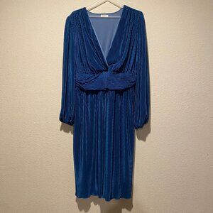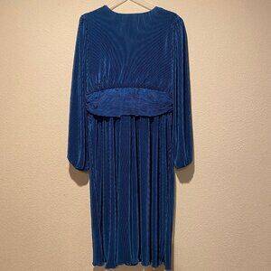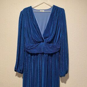 Kiyonna Sophie Teal Wrap Dress 2X Ribbed Velvet Long Sleeve Cocktail