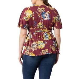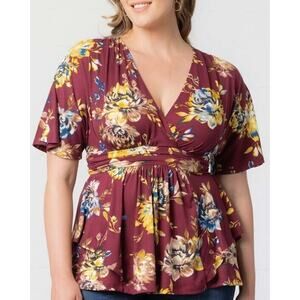 Kiyonna Top Encore Style 1X Floral Flutter Sleeves Empire Waist Spring Colorful