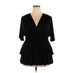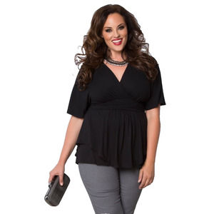 Kiyonna Top Promenade Style 1X Black Flutter Sleeves Empire Waist V Neckline