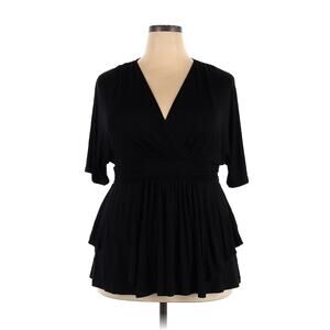 Kiyonna Top Promenade Style 1X Black Flutter Sleeves Empire Waistline Slimming
