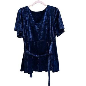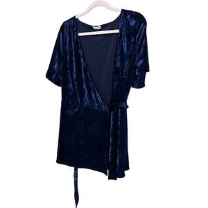 Kiyonna True Wrap Stretchy Top Womens 1X Blue Velvet Jewel Tone Holiday Party