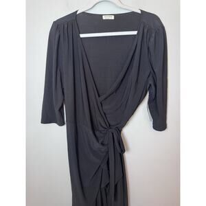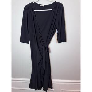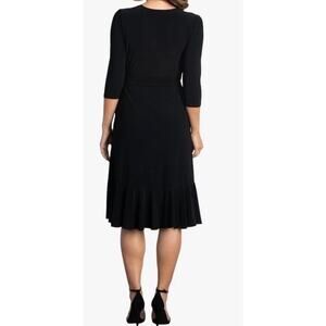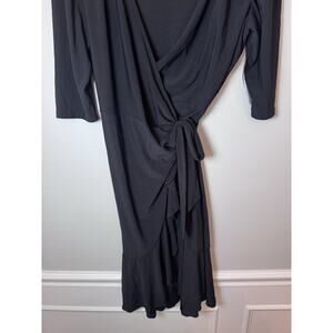 Kiyonna Whimsy Ruffled Midi WrapDress With Sleeves iBlack Noir Size 1X NWT