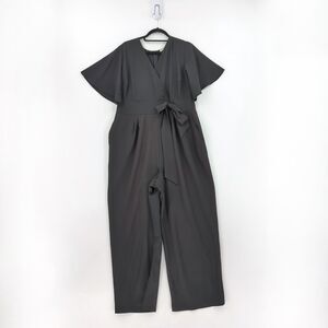Kiyonna Women 0x 10 12 Charisma Jumpsuit Black Faux Wrap Crepe V Neck Belt FLAW