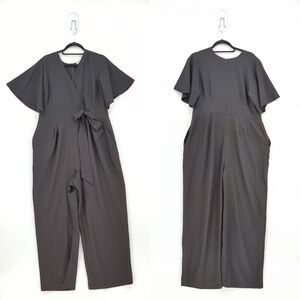 Kiyonna Women 0x Plus US 10 12 Charisma Jumpsuit Black Faux Wrap Crepe V Neck Belted FLAW