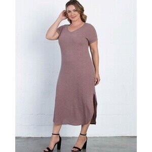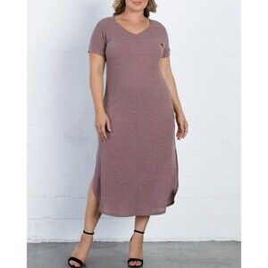 Kiyonna Women’s Plus 1X Jetsetter Midi Dress Knit Mauve T-shirt Stretch Travel