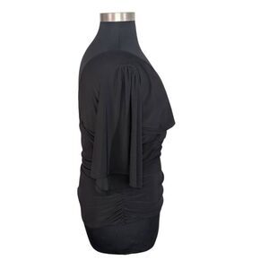 Kiyona 1X Black Top Flutter Sleeves Faux Wrap Evening Vacation Goth V-Neck V-Back
