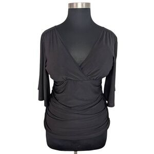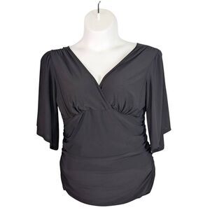 Kiyonna 1X Black Top Flutter Sleeves Faux Wrap Evening Vacation Goth Holiday
