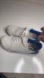 Kizik men's white mesh athletic sneakers with blue accents. These comfortable and stylish shoes offer a secure lace-up fit and are perfect for everyday wear or active pursuits.