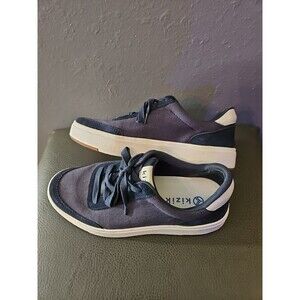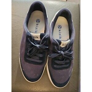 Kizik Prague Shoes Men's 7/W 8.5 Canvas Suede Wide Sneakers Blue Lace Up (S8)