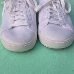 No wear on step in heel area. Shoes are white canvas and have some dirty spots. Contact me if you'd like additional photos.