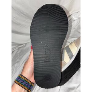 Kizik hands free slip on heel technology sneakers, but also with adjustable laces. I love these tennies and was buying a 2nd pair, unfortunately this style fits more like a size 7, although sized 7.5. Super cute. Appear to never have been worn, but have a mark on the sole (see photo)