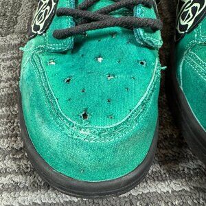 There is some wear on both toes and the vent holes appear to be a bit stretched.