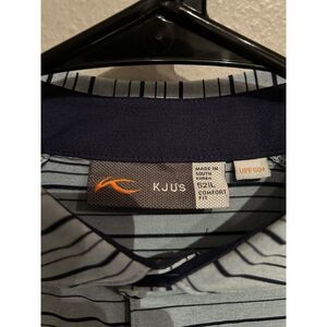 Kjus Mens 52 Large Polo Shirt Performance Stretch Blue Striped. Condition is Pre-owned - Excellent. Shipped with USPS Ground Advantage.