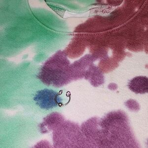 KkCo Tie Dye Oversized Pierced Sweatshirt Unisex Size S. Oversized crewneck sweatshirt featuring a small piercing at center front and patch on back. Sewn and hand dyed in Los Angeles. Oversized unisex sweatshirt is 100% cotton. Runs large so can fit a small or medium (22" pit to pit). Excellent condition. Discontinued.