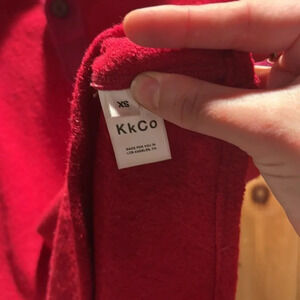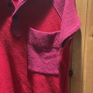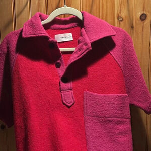 KkCo 100% wool short sleeves sleeve top. Button collar and front pocket. Natural wear due to the wool content but no callouts to note. This brand is made in Las Angeles and while I can’t find the exact stock photo, this likely retailed somewhere in the $200+ range based on comps on their site.
