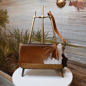 Klassy Cowgirl Hair on Cowhide Clutch Wristlet. Comes with a removable wrist strap and tassel zipper. Measures Approx- 4-1/2"H x 8"W