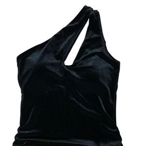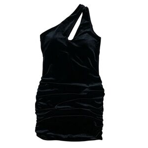 Klassy Network Black Velvet One Shoulder Ruched Mini Dress Medium Side Zip