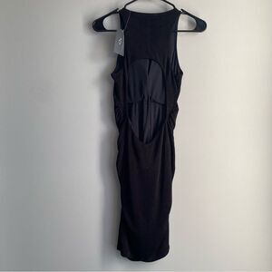 Klassy Network High Neck Open Back Ruched Bodycon Midi Dress