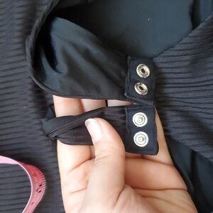 Black ribbed bodysuit in size medium. Gently worn but in excellent condition. About 14 inches underarm to underarm. Bra inserts not included.