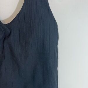 Sleek black halter tank. Perfect for casual outings. Essential wardrobe piece.