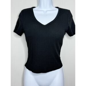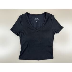 Klassy Network Women’s Cropped Built In Bra Crop Top Size Large Black Minimalist