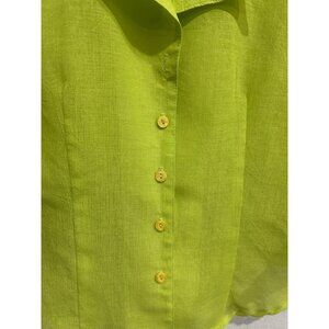 Klassy Womens Lime Button-Up Collared Blouse 3/4 Sleeve Lightweight Sheer Small