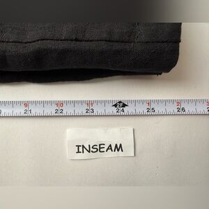 These linen pants are in excellent preowned condition. There are no stains or holes. There is an interesting pocket feature ( please see photos) . The left pocket has a natural opening to the leg in addition to the pocket. It is not a flaw but a rather strange feature.