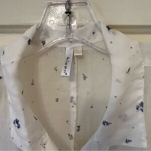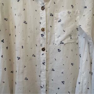 Kleen 100% Ramie Button Down Long Sleeve Shirt Blue White Tunic Womens M Pockets