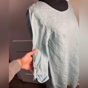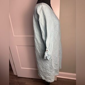 Kleen Light Blue Linen Tunic Dress 3/4 sleeves lagenlook fitted