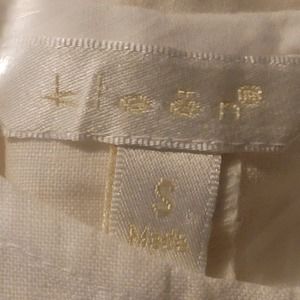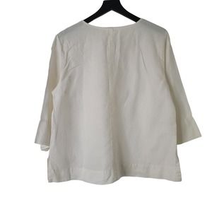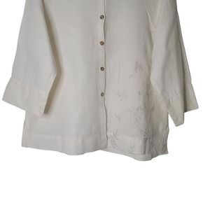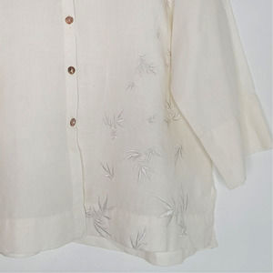 Kleen Linen Tunic Top S Cream Button Up Lagenlook Collarless Embroidery Minimal