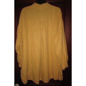 Amazing size 1X oversized tunic length big shirt from Kleen. The shirt is pure linen and done in a textured fabric that is fairly heavy and soft for a linen. It is a deep gold yellow color, a great neutral shade.