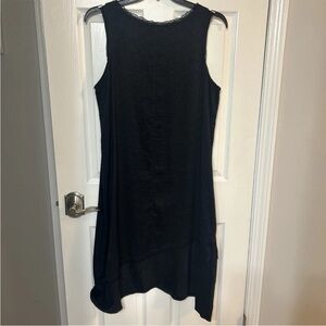 Kleen Sz XL NWT black Silk & Linen Sleeveless Minimalist Lagenlook Midi Dress