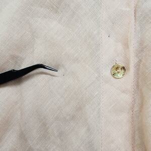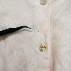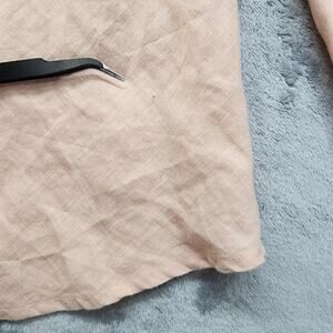 Kleen Top Womens Size L Orange Linen Button Up Crop Sleeve Blouse Lagenlook Spring Collarless Airy Natural Hippie Boho