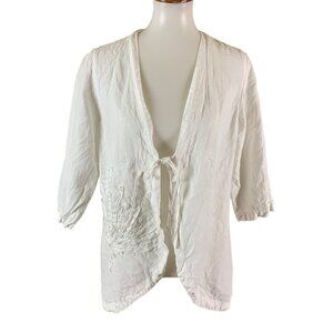 Kleen White Linen Open Front Cardigan Small Womens Boho Lightweight Top