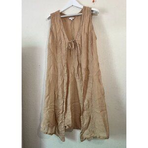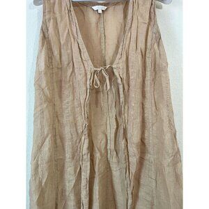 Kleen Women's Linen Tie-Front Sleeveless Cardigan Vest Large Tan Lightweight