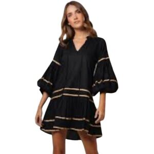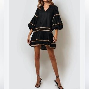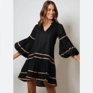 Kleid Tiered Ilana Mini Dress in Black NWT Grosgrain Trim accents in Gold