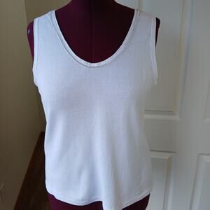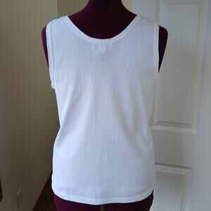 Kleids Classic White Tank Top OS Large rhinestone scoop neck seamless cotton vtg
