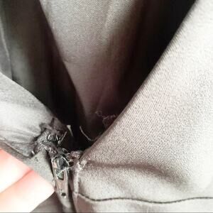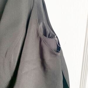 Kleinfeld Black Satin Formal Cold Shoulder Maxi Dress Strappy Back Size 2 {Two}. Floor length. Slight flare at bottom of skirt. Fitted on top. A few loose thread on back, criss-cross straps and at top of back zipper where fabric comes together. Overall good, preowned condition. Stunning piece for a formal, black tie event, gala, or as a wedding guest or bridesmaid. Polyester. Dry clean. Low V-style back with straps crossing over back.