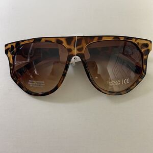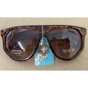Kleo Plastic Oversized Flat Top Avaitor Fashion Sunglasses Brown Gold Lion Gafas