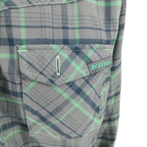 Klim Plaid Upland Flannel Button Down Collar Shirt Size L Green Gray Long Sleeve