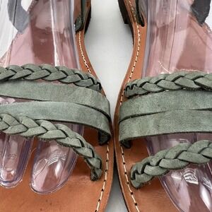 These sandals are so well made! Hand made in Greece with a leather upper and footbed. The straps wrap around the ankle. It's such a feminine and flattering style. Beautiful olive green color. Excellent condition.