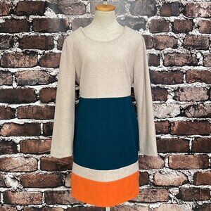 Kling Dress Wool Color Block Tan Teal Blue Orange Size 4