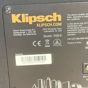 Klipsch RSB-6 Wireless Subwoofer For Soundbar. Has Original Plug. PARTS only not working.