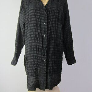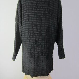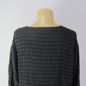 Klis Collection Women S Black Long Sleeve 100% Silk Pucker Tunic Shirt V Neck
