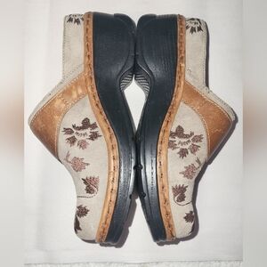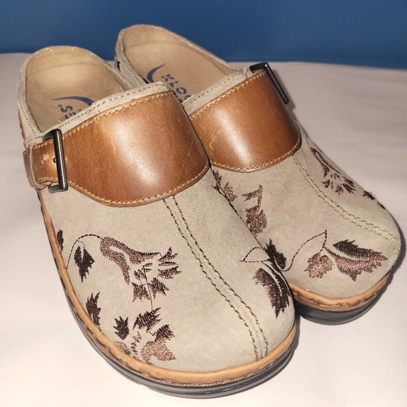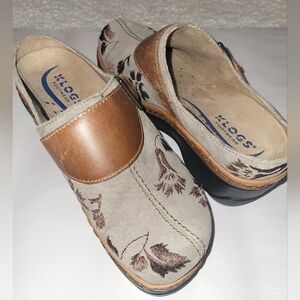 Klogs Austin Brown Tan Floral Clogs Mules Size 7W Non Slip Leather Upper