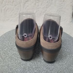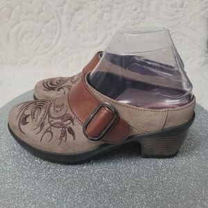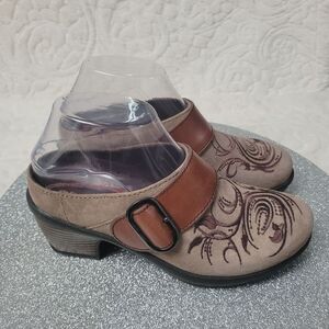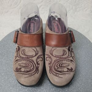 Klogs Clogs Tapestry Embroidered Suede Taupe Brown Leather Strap Size 6M