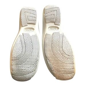 Comfortable white leather slip-on shoes by Klogs. Stylish and easy to wear. Like new condition with one minimally visual stain shown on picture. Excellent for work stylish clogs!! Sole width 4.5” wide!