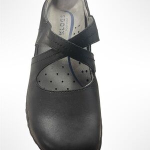 Women’s clogs Klogs (Cara) size 8w. Step into comfort and style with these sleek black leather shoes. Perfect for any occasion.