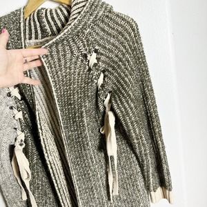 Kloth & Clover Hooded Gray Knit Braided Cardigan Sweater sz S